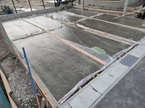 コンクリート打設後は、所定の期間を設けて養生を行ないます。