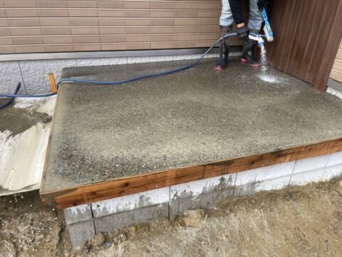 養生後、適切なタイミングで洗い出し作業を開始します。