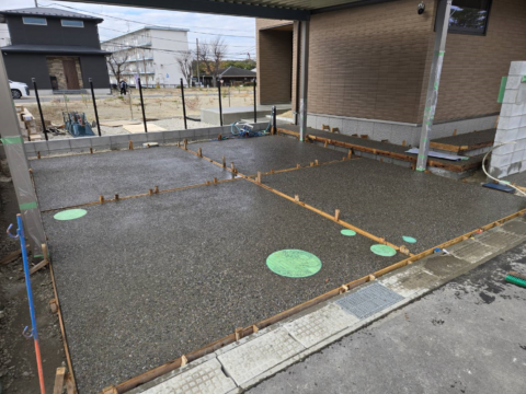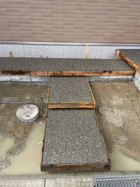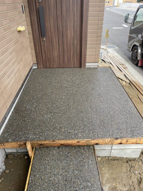 今回は、駐車場およびアプローチにて行なったコンクリート洗い出し工事の施工過程をご紹介いたします。