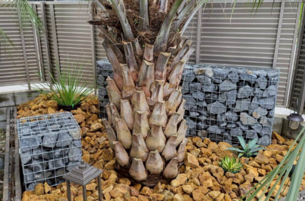 殺風景だった弊社の花壇スペースに、シンボルツリーのココスヤシを入れました。