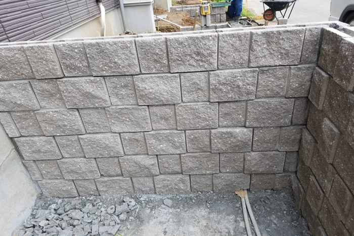 先日、外構リフォーム工事を行いました。 今回行ったのは、「ベースコンクリート打設」「RC擁壁基礎」「大谷石風ブロック積み」「駐車場...